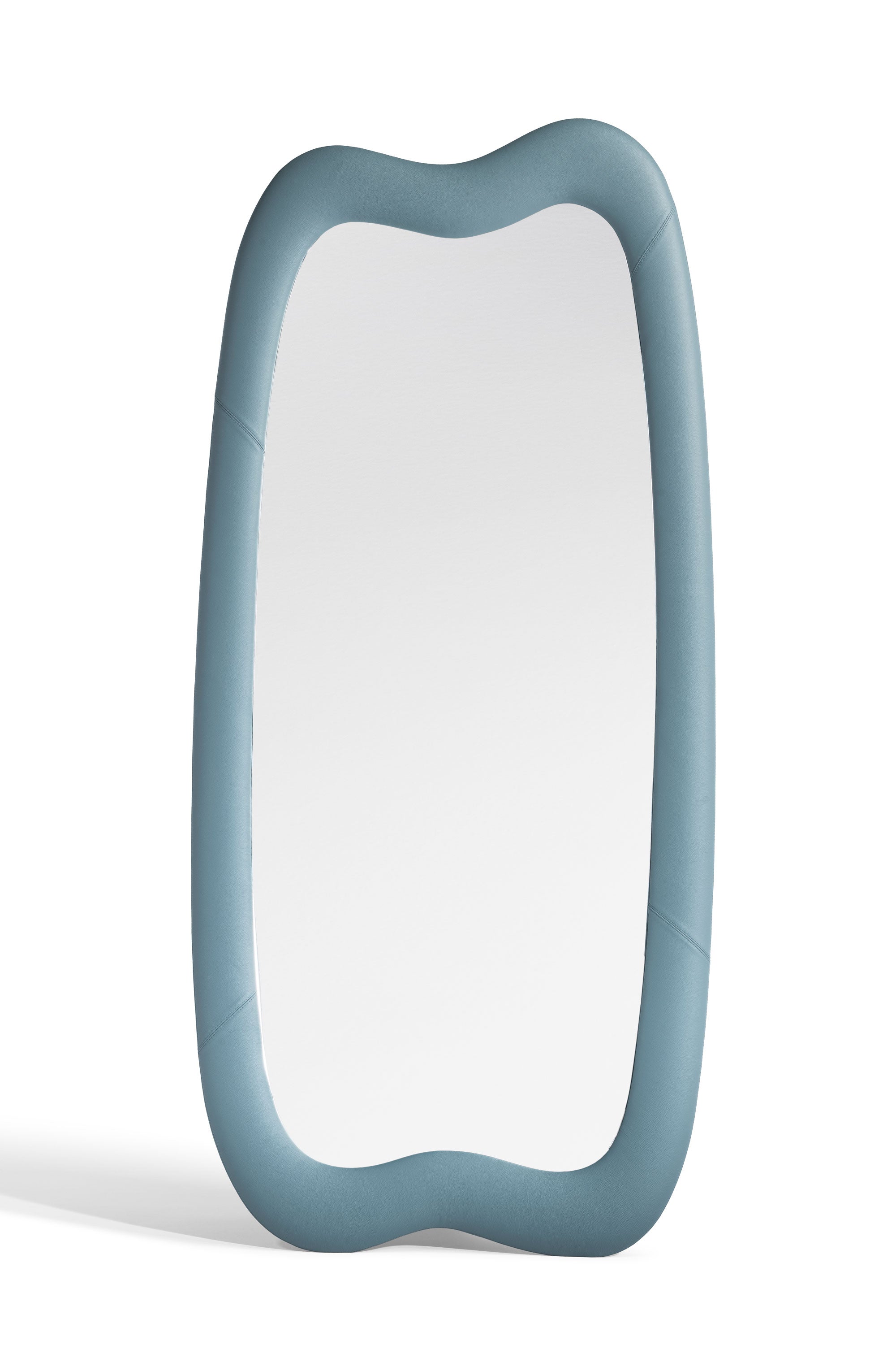 Squash features a trio of leather upholstered mirrors, echoing the organic lines of the armchair. Smooth, hard glass is cushioned in tactile, curving frames. The largest mirror in the collection is full length and can be free-standing or wall mounted, the medium mirror is wall-mountable, and the smallest is a pocket-sized compact.  All the frames are upholstered in Poltrona Frau SC leather in colours chosen by the designer from the Pelle Frau ColorSphere®: Panna/Shara/Steel Blue/Mineral Blue/Siam/Garnet.