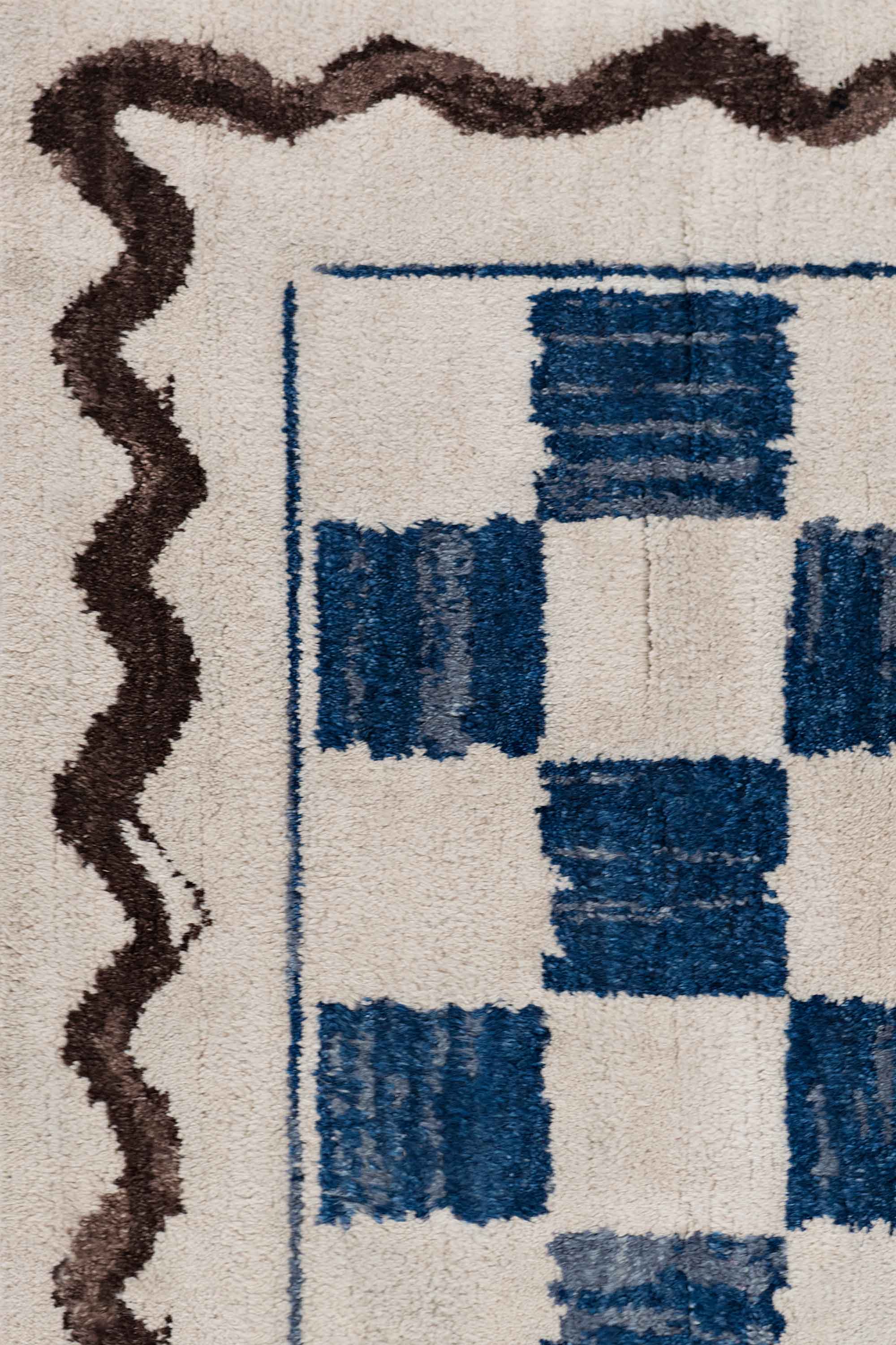 Hand painting is one of Toogood’s most distinctive trademarks. The rhythm and imperfections of a drawn line or painted stroke capture the pulse of creativity and offer a direct connection to the artist. In the Squash collection there are two rug styles featuring a checkerboard pattern inspired by old English patchwork chairs. Each square was hand painted, and this artwork was translated into textiles using the traditional Berber knotting technique. The Squash rug is handmade in Pakistan, and is available in two sizes (240x340 and 250x250cm) and in two variants of Blue and Brown. Natural dyes and natural fibers replicate hand painting in the closest way, and the deep pile and fuzzy threads evoke the blended look of brushstrokes.