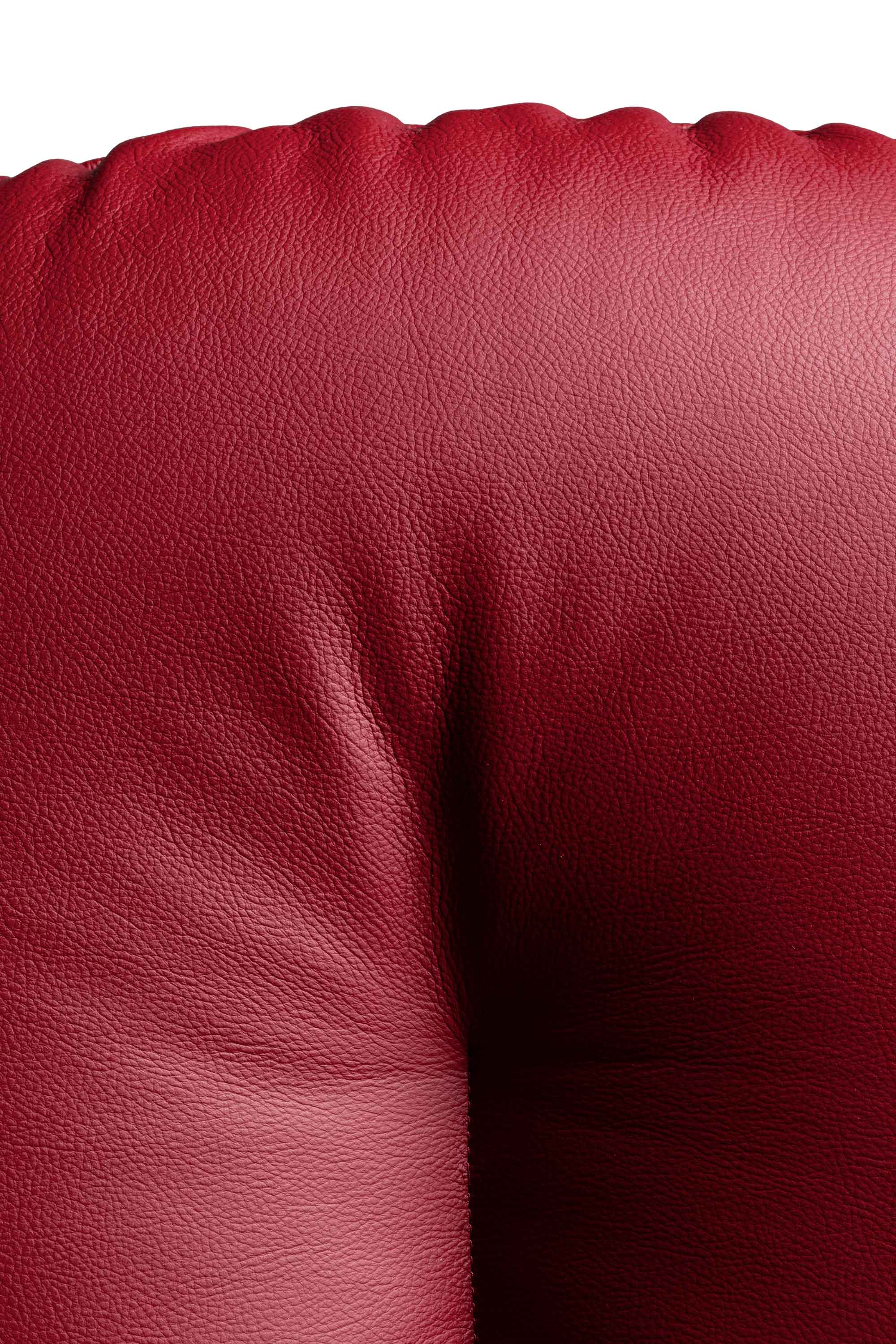 During her trip to Italy, Faye found the first Vanity Fair from the thirties by Renzo Frau in red leather. “I also loved Poltrona Frau’s iconic Vanity Fair from the Thirties in lipstick red. Straight away I knew I wanted to honour these archive colours and respond with a contemporary shape that met their boldness. It feels very refreshing to make a chair in such a strong, saturated shade.” Poltrona Frau uses a 23-step tanning process meaning the leather is dyed through and surface scratches will not reveal the lining underneath. Each piece uses a monochromatic palette of two tonal leathers.